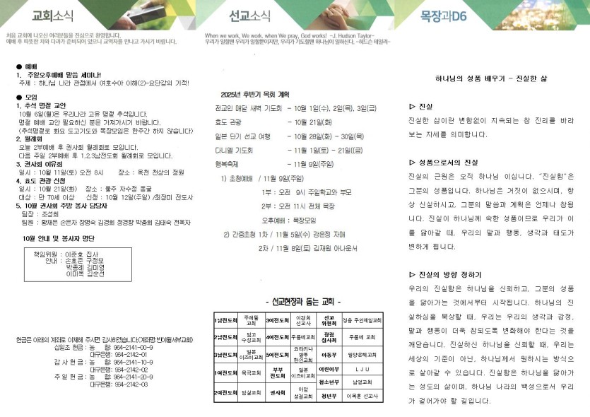 (추석명절로 화요 도고기도와 목장모임은 한주간 하지 않습니다)