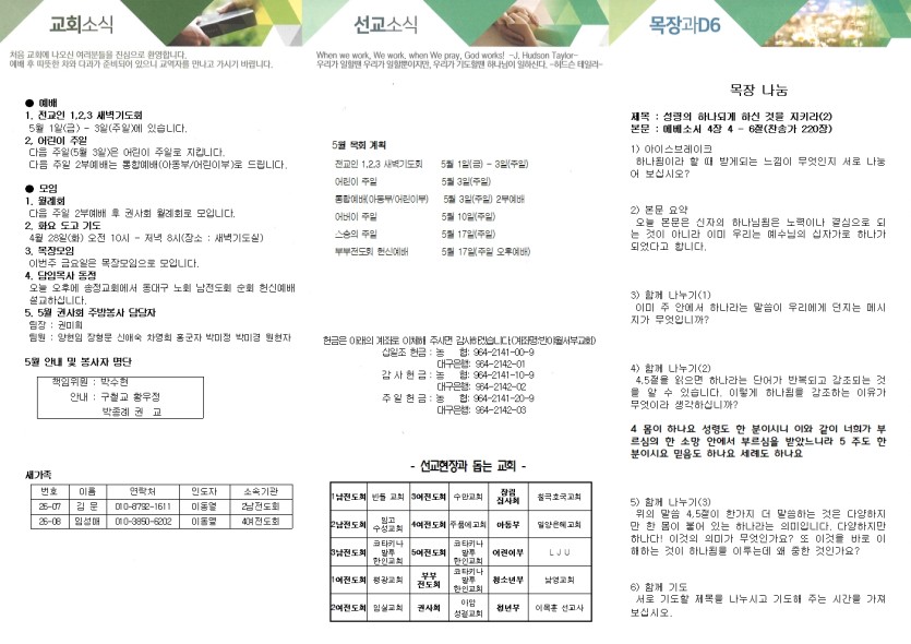5월 안내 및 봉사자 명단